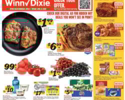 Browse the current Winn Dixie Weekly Ad, valid April 8 – April 14, 2026. Save with the Winn Dixie Ad this week, and get the limited time savings on value pack meat products, pantry essentials, natural juices, shredded cheeses, and adult beverages.