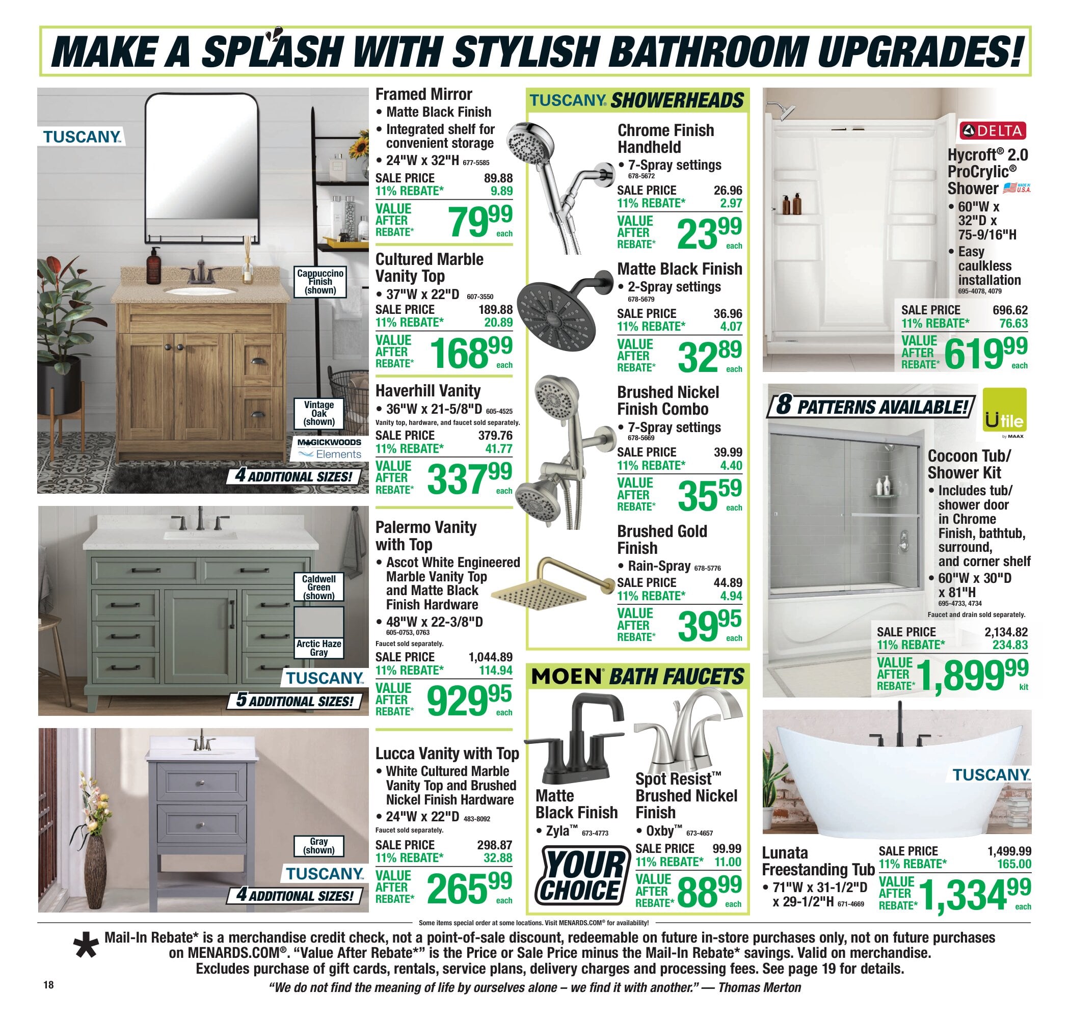 Don’t miss the circular sale for this week, and print off your coupons before heading out to shop. For bigger savings, shop Menards Online Extras and Hot Buys that you can combine with 11% Rebate for in-store purchases. Also, look for steepest discounts on store display models and unclaimed special orders when you shop at your local store.