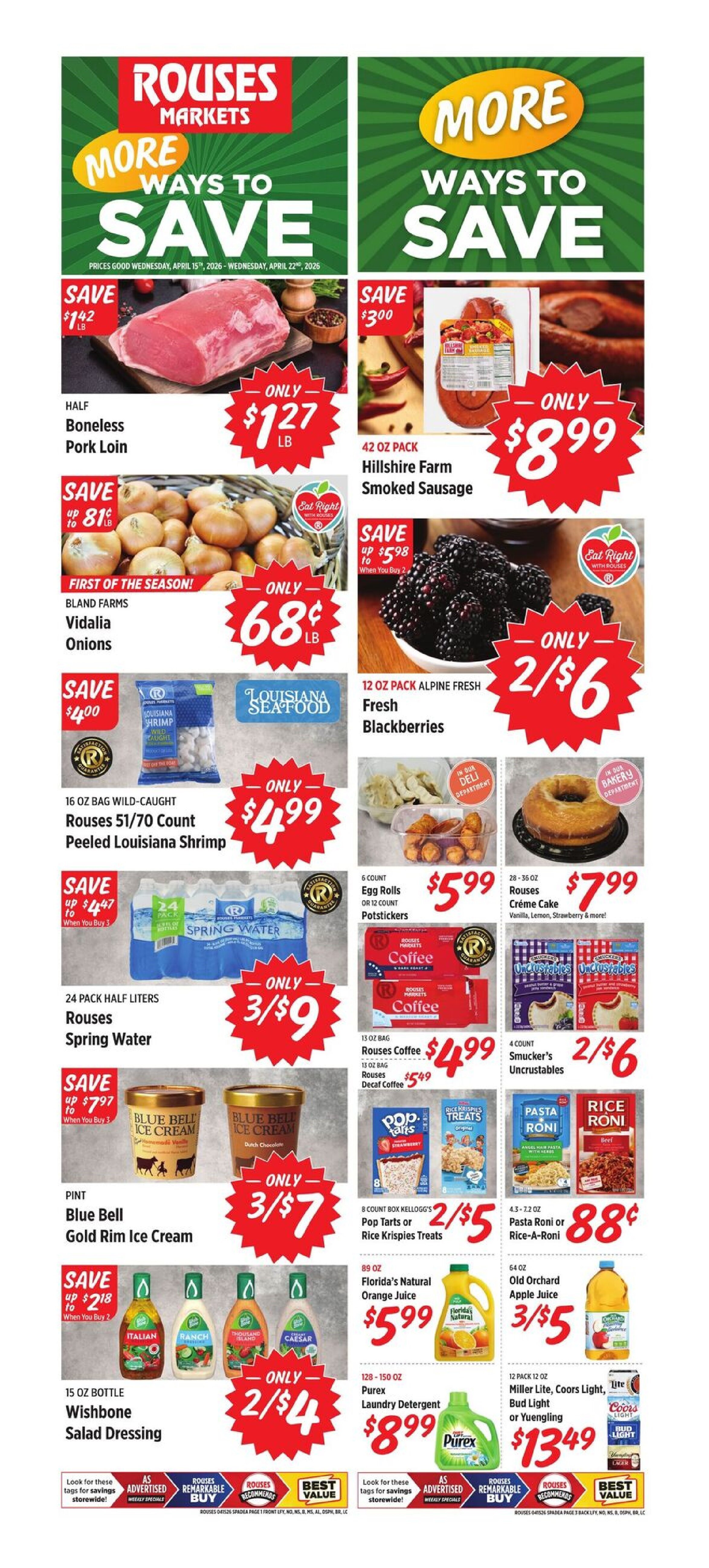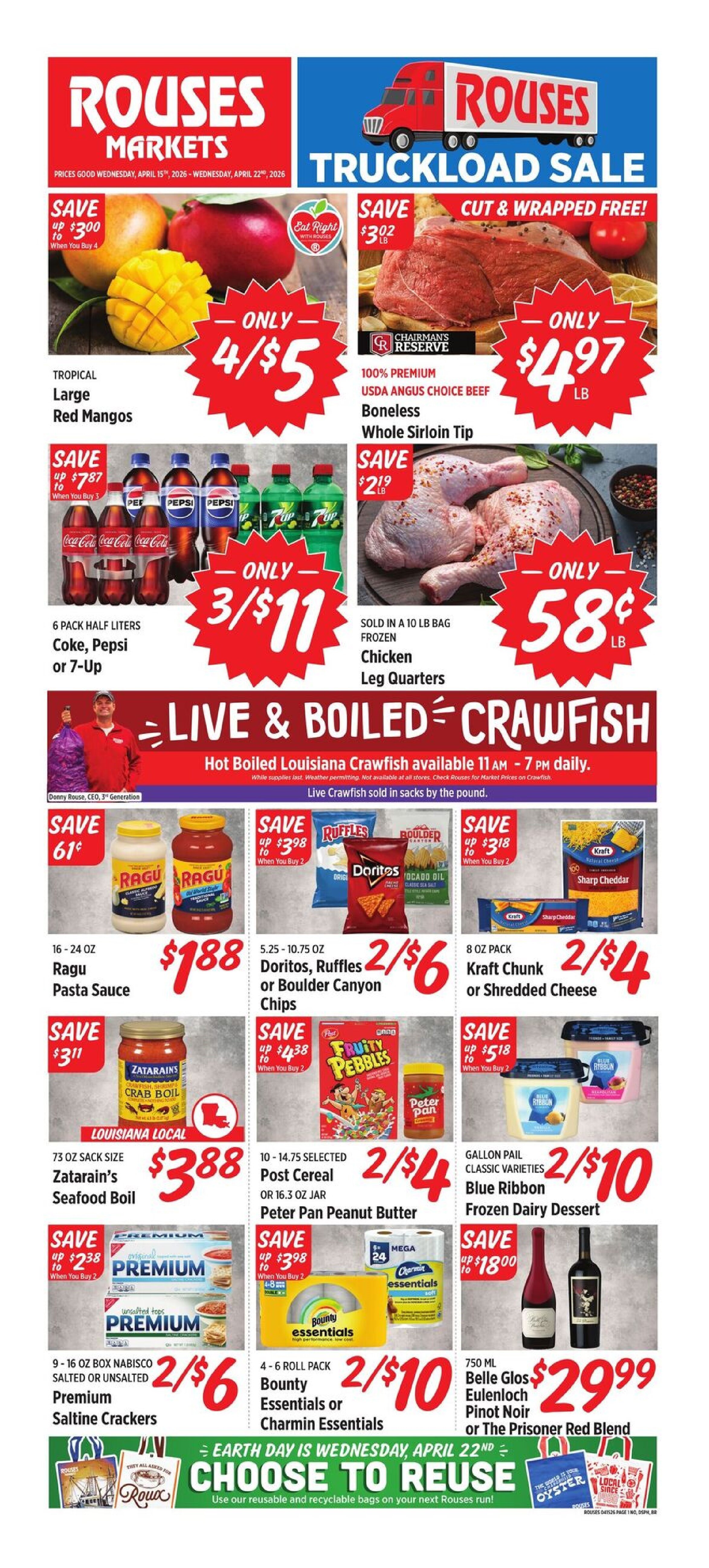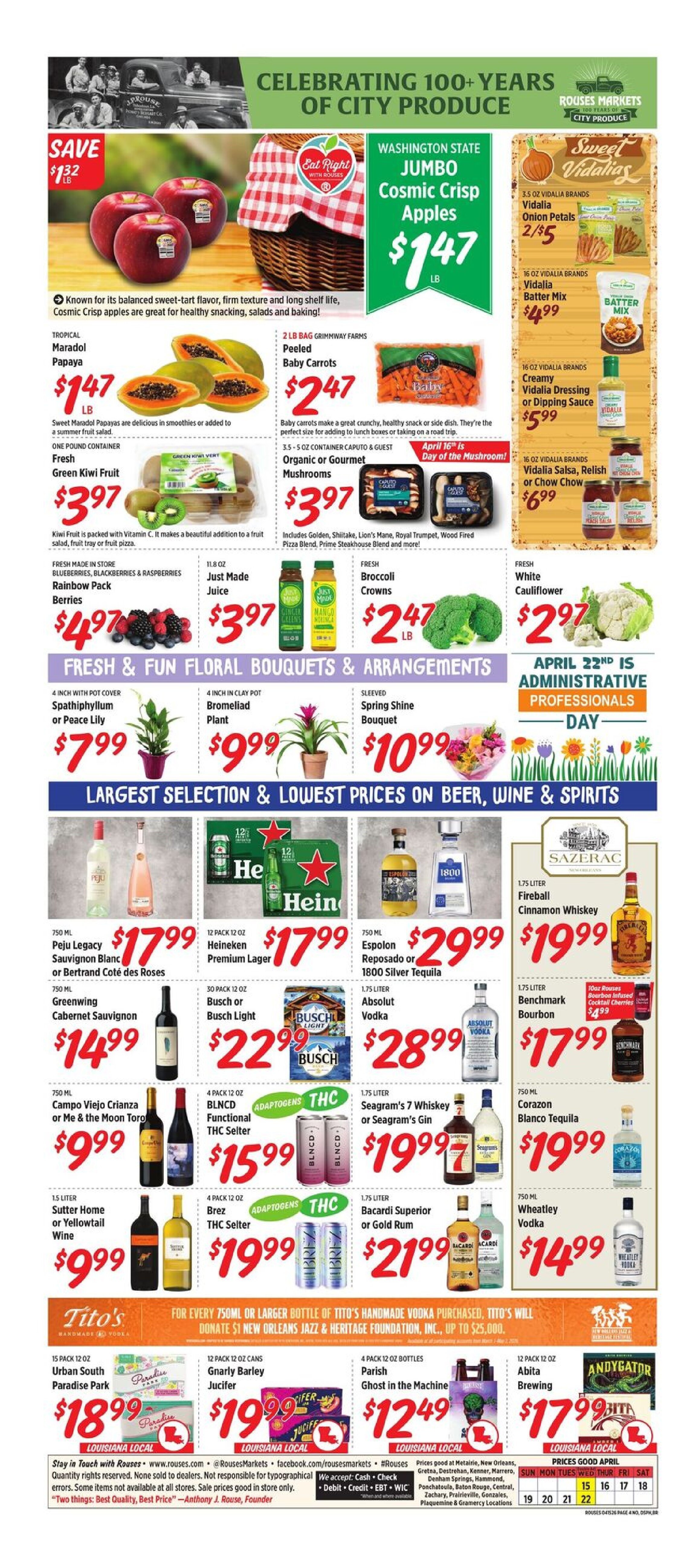 Browse the latest Rouses Weekly Ad preview for next week, valid April 15 – April 22, 2026. Save with this week Rouses Markets savings, and get the limited time savings on ethnic groceries, adult beverages, exclusive meats, made-in-store yogurt parfaits, and takeout food.