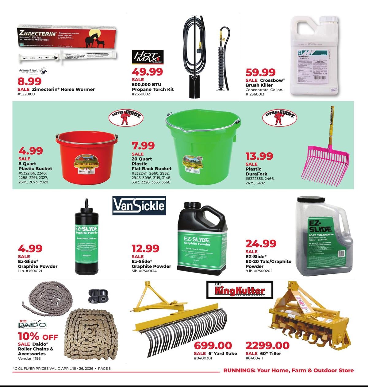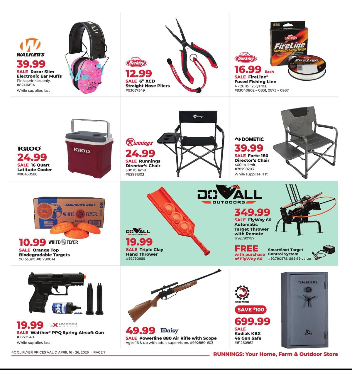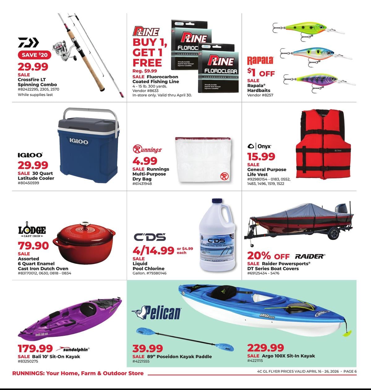 Save this week with the Runnings weekly flyer, valid April 16 – April 26, 2026. Explore special offers on farm supplies, tools, outdoor gear, pet essentials, and home improvement products.